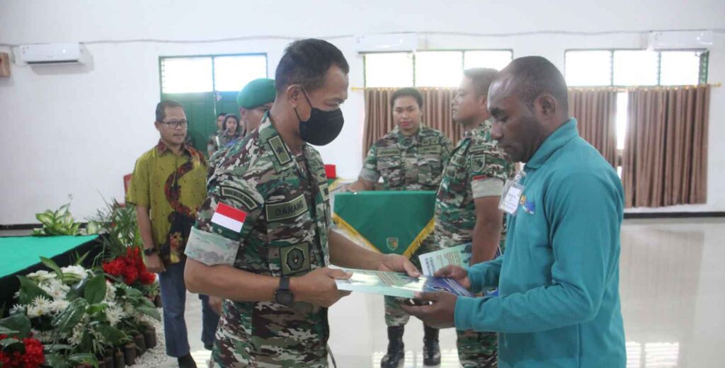 JAYAPURA, “tabloidnusantara.com” – Pangdam XVII/Cenderawasih Mayjen TNI Muhammad Saleh Mustafa diwakili oleh Kapoksahli Pangdam XVII/Cenderawasih Brigjen TNI Danang Wiranta, menutup Pelatihan dan Sertifikasi Alat Berat untuk masyarakat Orang Asli Papua (OAP), bertempat di Denziour 10/KYD Jl. Sentani, Padangbulan, Waena, Jayapura, Papua, Jumat (03/03/2023).