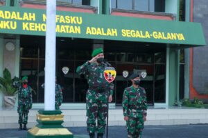 Denpasar, “TABLOIDNUSANTARA” – Irdam IX/Udayana Brigjen TNI Tatan Ardianto, S.I.P., bertindak selaku Inspektur Upacara (Irup) dalam rangka upacara pengibaran Bendera Merah Putih pada Selasa (17/5/2022) yang diikuti para Prajurit dan PNS Kodam IX/Udayana bertempat di lapangan Upacara Makodam IX/Udayana, Denpasar.