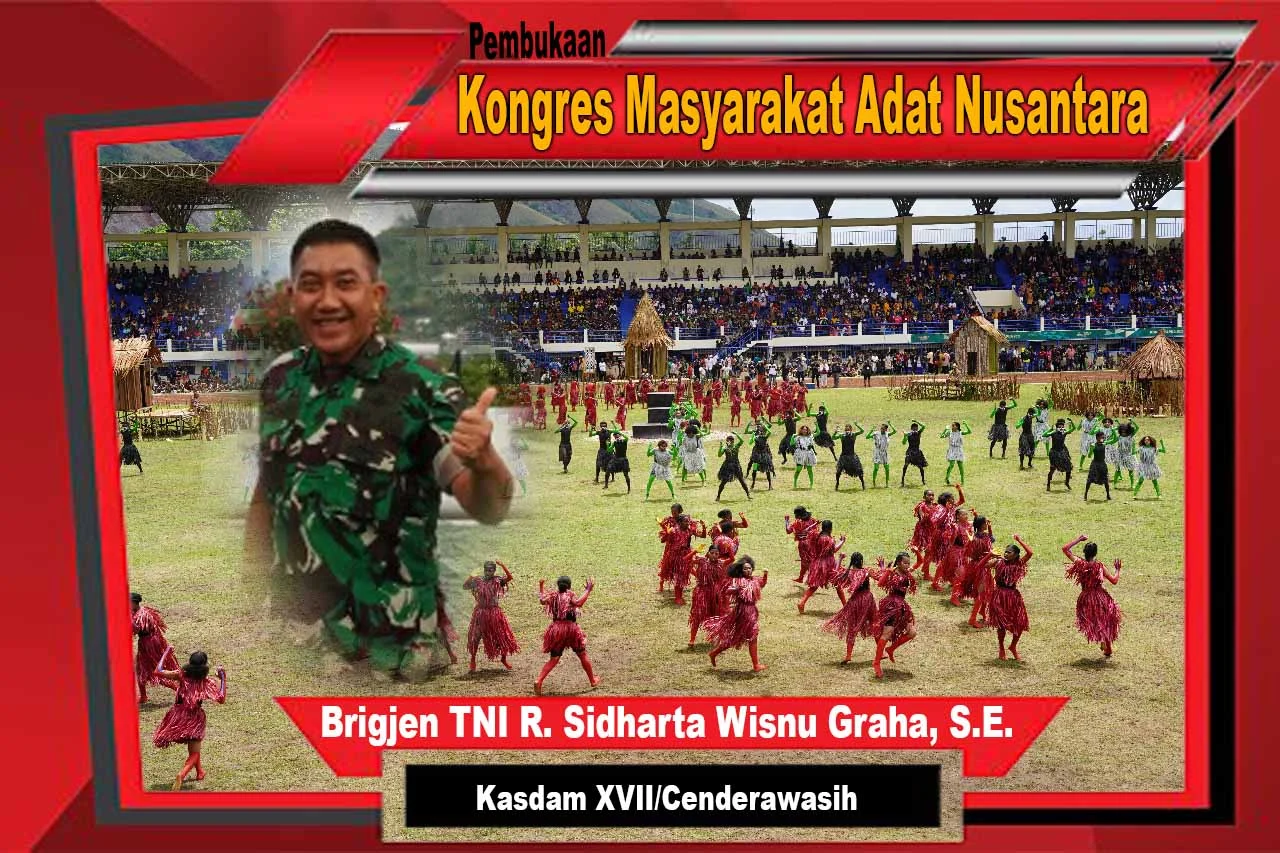 Kasdam XVII/Cenderawasih Brigjen TNI R. Sidharta Wisnu Graha, S.E. menghadiri kegiatan Pembukaan Kongres Masyarakat Adat Nusantara (KMAN) ke-VI 2022 yang digelar di Stadion Barnabas Youwe Sentani, Kabupaten Jayapura.