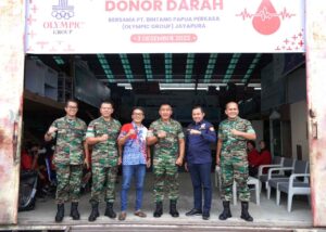Jayapura, “tabloidnusantara.com” – Kodam XVII/Cenderawasih yang diwakili oleh Kepala Staf Kodam (Kasdam) XVII/Cenderawasih Brigjen TNI R. Sidharta Wisnu Graha, S.E. berkunjung ke PT. Bintang Papua Perkasa (Olympic Group), dan mengikuti kegiatan Donor Darah, bertempat di Jalan Kelapa Dua Entrop, Bl EKS, Entrop, Jayapura Selatan, Kota Jayapura, Papua. Sabtu (3/12/2022).