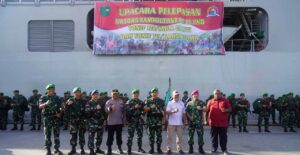 Jayapura, “TABLOIDNUSANTARA.COM” – Kasdam XVII/Cenderawasih Brigen TNI R. Sidharta Wisnu Graha, S.E. selaku Inspektur Upacara (Irup) melepas kepulangan dua Satuan Tugas TNI perbatasan RI-PNG, yaitu Yonif 126/KC dan Yonif 711/RKS, bertempat di Pelabuhan Pelindo Jayapura, Jumat (28/10/2022).