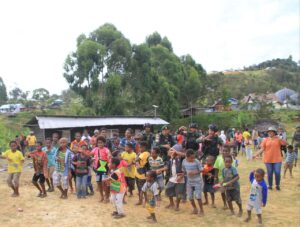 LANNY JAYA, tabloidnusantara.com – Dalam mengiringi tugasnya di Pegunungan tengah Kabupaten Lanny Jaya Papua, Prajurit Satgas Yonif MR 412 Kostrad berbagi suka cita keceriaan bersama anak-anak di daerah penugasan, ini dilakukan sebagai upaya mendukung pola pembinaan teritorial karena keceriaan anak-anak merupakan representasi kedamaian dan ketentraman suatu daerah.