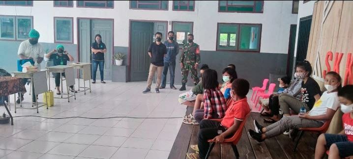 PAPUA, “TABLOIDNUSANTARA.COM” – Anak-anak SD semangat mengikuti kegiatan Vaksinasi yang diselenggarakan oleh Puskesmas Warari, bertempat di SD Kasih Bangsa Kelurahan Anotaurei, Distrik Anotaurei, Kab. Kepulauan Yapen, Rabu (16/02)