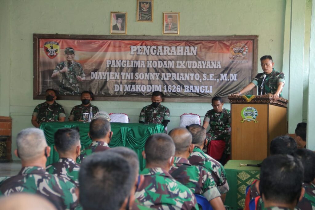 Usai melaksanakan chek point di Cafe Elago, Pangdam kembali melanjutkan perjalanan berangkat menuju Makodim 1626/Bangli untuk memberikan pengarahan kepada anggota Militer dan PNS Kodim 1626/Bangli serta Minvetcab IX/26/Bangli.