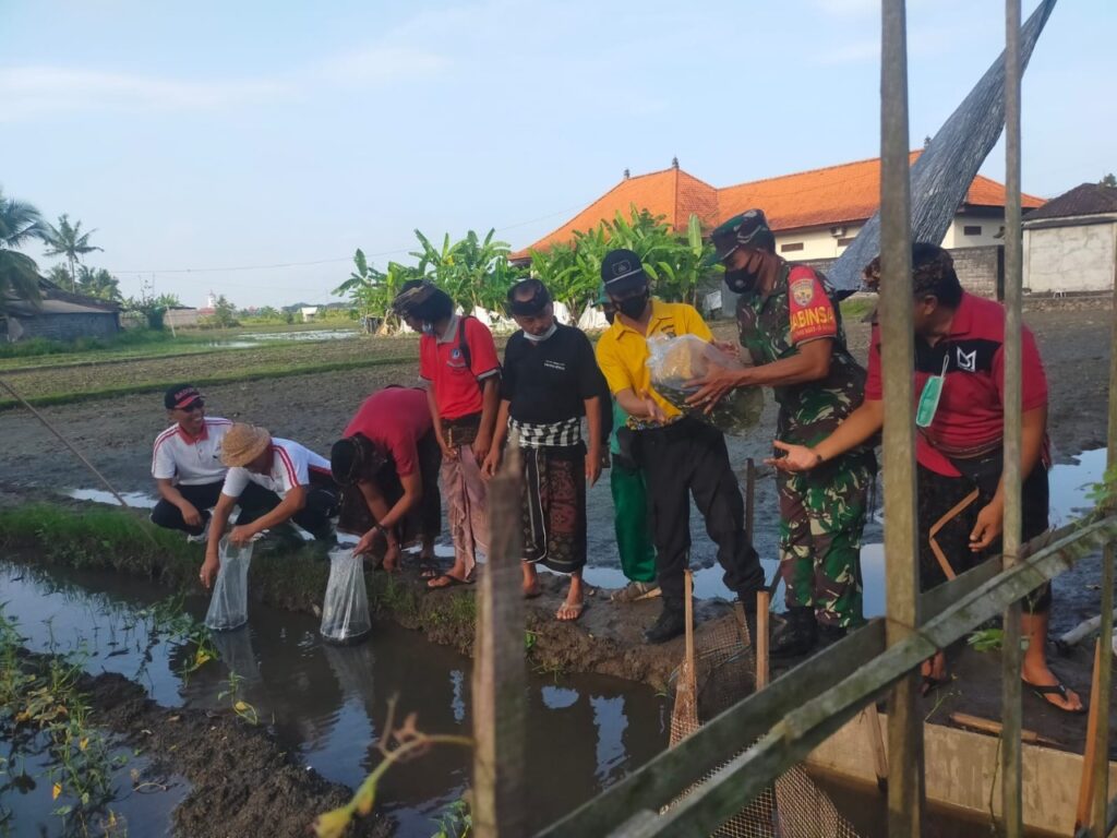 “Selain itu, dilaksanakan juga Pelestarian Lingkungan, yang diaplikasikan dengan penebaran bibit ikan dan penanaman pohon di wilayah desa Mengwi,” ujar Babinsa.