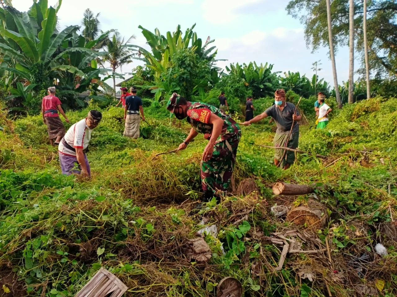 Badung, “TABLOIDNUSANTARA” – Babinsa Koramil 1611-04/Mengwi Serma Wayan Budiastra bersama warga melaksanakan kegiatan Bulan Bhakti Gotong Royong bersama masyarakat Desa Mengwi yang dilaksanakan di Jabe Pura Dalem Desa Adat Mengwi, Br. Pengiasan, Desa Mengwi, Kecamatan Mengwi, Kabupaten Badung, pada Jumat (13/05/2022).