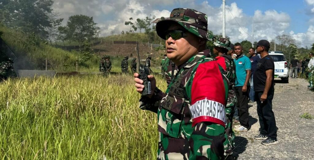 Komandan Kodim 1416/Muna Letkol Inf Gilles R.B Hogendorp, S.I.P. melakukan koordinasi dan pemantauan saat latihan penanggulangan bencana.