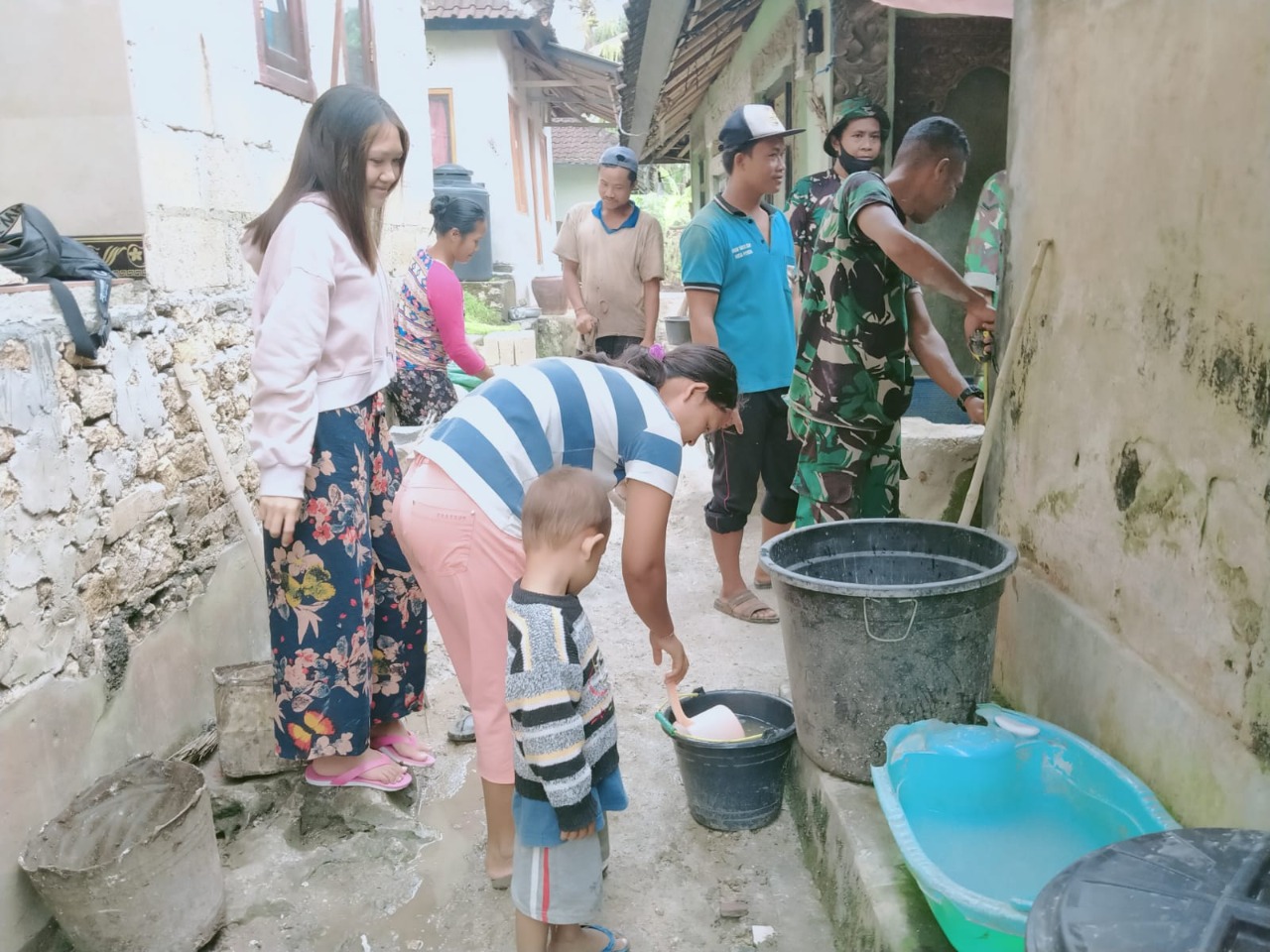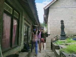 Bukan hanya dari kalangan bapak-bapak dan anak-anak saja, bahkan ibu-ibu rumah tangga serta remaja putri juga turut ambil bagian dalam mensukseskan kegiatan TMMD Kodim Klungkung ini.