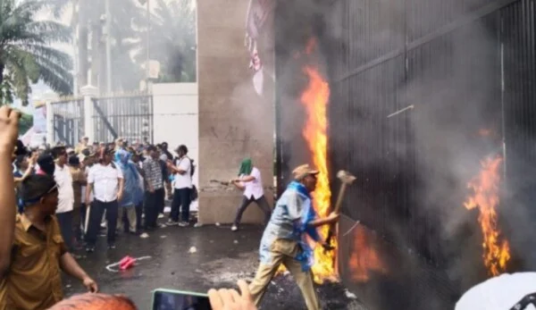“Tidak ada itu niat kami demo untuk ricuh, karena awalnya tidak ada yang menemui para pendemo, akhirnya naik pitam para oknum demo,” ujarnya, Kamis 1 Februari 2024.