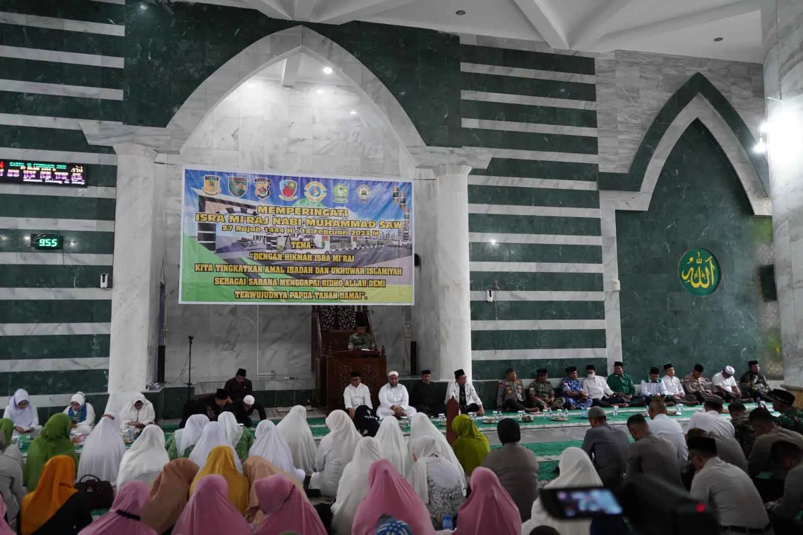 “Hal ini sejalan dengan tema Isra Mi’raj Nabi Muhammad SAW 1444 H / 2023 M, yaitu Dengan Hikmah Isra Mi’raj Kita Tingkatkan Amal Ibadah Dan Ukhuwah Islamiyah Sebagai Sarana Mengapai Ridho Allah Demi Terwujudnya Papua Tanah Damai,” jelasnya.