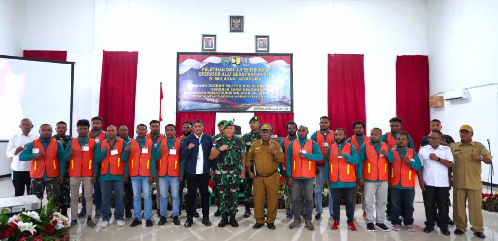 Jayapura, “Tabloid Nusantara” – Pangdam XVII/Cenderawasih Mayjen TNI Muhammad Saleh Mustafa diwakili oleh Kasdam XVII/Cenderawasih Brigjen TNI R. Sidharta Wisnu Graha, S.E., membuka pelatihan dan sertifikasi Alat Berat untuk masyarakat Orang Asli Papua (OAP), bertempat di Denziour 10/KYD Jl. Sentani, Padangbulan, Waena, Jayapura, Papua, Senin (20/2/2023).