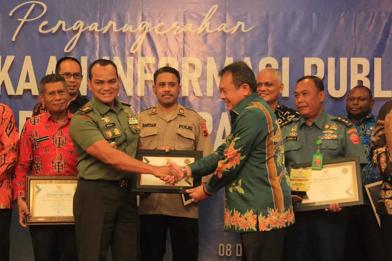 Jayapura, “tabloidnusantara.com” – Kodam XVII/Cenderawasih mendapat Penganugerahan Keterbukaan Informasi Badan Publik Se-Provinsi Papua Tahun 2021 dari Komisi Informasi Provinsi Papua, bertempat di Swiss Belhotel Jl. Pacific Permai, Bayangkara, Kec. Jayapura Utara, Kota Jayapura, Papua. Kamis (8/12/2022).