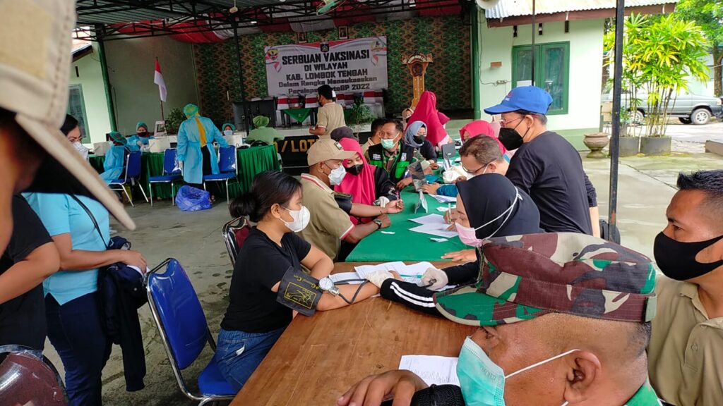 Kodim 1620/Loteng bekerjasama dengan tenaga kesehatan dari Denkesyah Kota Mataram dan Puskesmas Praya. Serbuan vaksinasi dimulai pukul 08.00 Wita hingga pukul 14.00 Wita dengan menyasar penerima vaksin sejumlah 500 peserta baik dosis pertama, kedua dan ketiga.