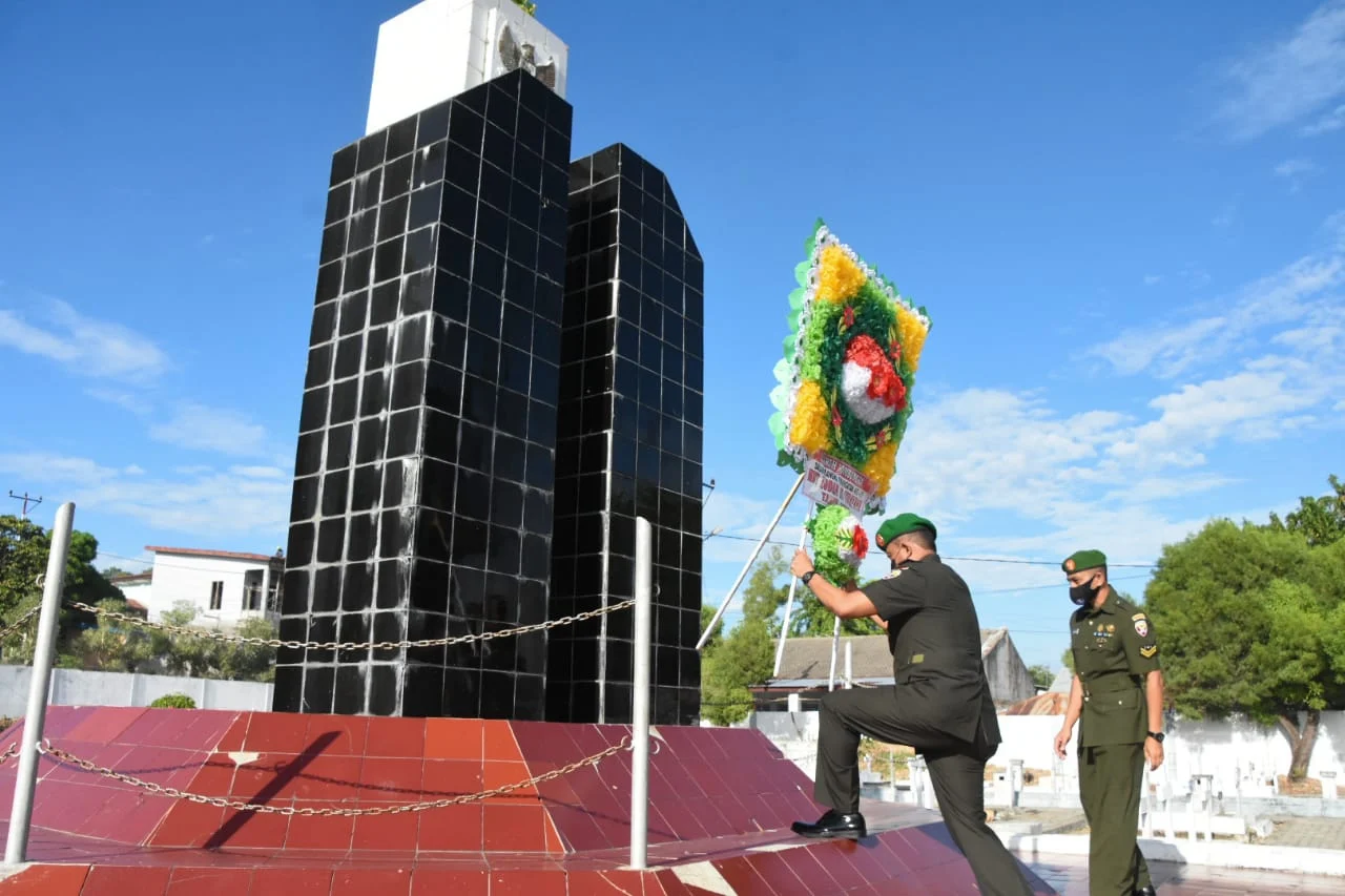 Kegiatan tersebut diawali dengan penghormatan kepada Arwah Pahlawan yang dipimpin oleh Kasrem 161/WS selaku Pimpinan Rombongan Ziarah, dilanjutkan mengheningkan cipta dan peletakan Karangan Bunga di Tugu Monumen TMP Dharma Loka.