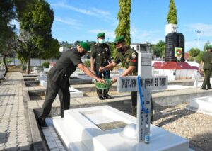 Selanjutnya, Kasrem didampingi para Kasi Kasrem 161/WS dan Persit KCK Koorcab Rem 161 PD IX/Udayana serta seluruh peserta Ziarah Rombongan melaksanakan kegiatan tabur bunga di makam para Pahlawan yang berada di Taman Makam Pahlawan (TMP) Dharma Loka.