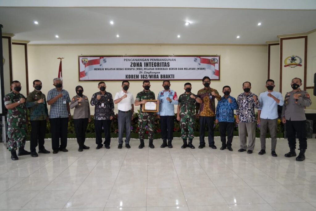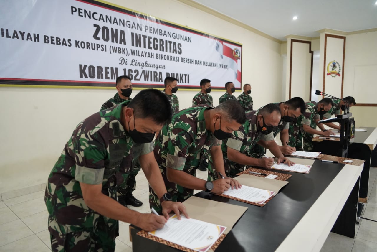 Dalam sambutannya Danrem mengatakan, bahwa pencanangan pembangunan zona integritas menuju WBK beserta WBBM di lingkungan Korem 162/WB merupakan suatu kesungguhan dan tekad dari Korem 162/WB dalam mengukuhkan diri sebagai bagian dari TNI Angkatan Darat yang mempunyai komitmen untuk mencegah terjadinya praktek KKN disertai dengan upaya untuk mewujudkan wilayah bebas korupsi serta reformasi, birokrasi yang transparan akuntabel disatker maupum subsatker jajaran Korem 162/WB.