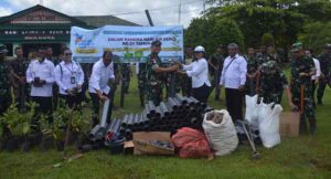 Danrem 174/ATW Brigjen TNI Agus Widodo mengucapkan terima kasih kepada Kepala BWS Ibu Magdalena Papua karena telah menyerahkan dan melakukan penanaman secara simbolis Biopori serta bibit tanaman buah kepada perwakilan anggota Korem 174/ATW.