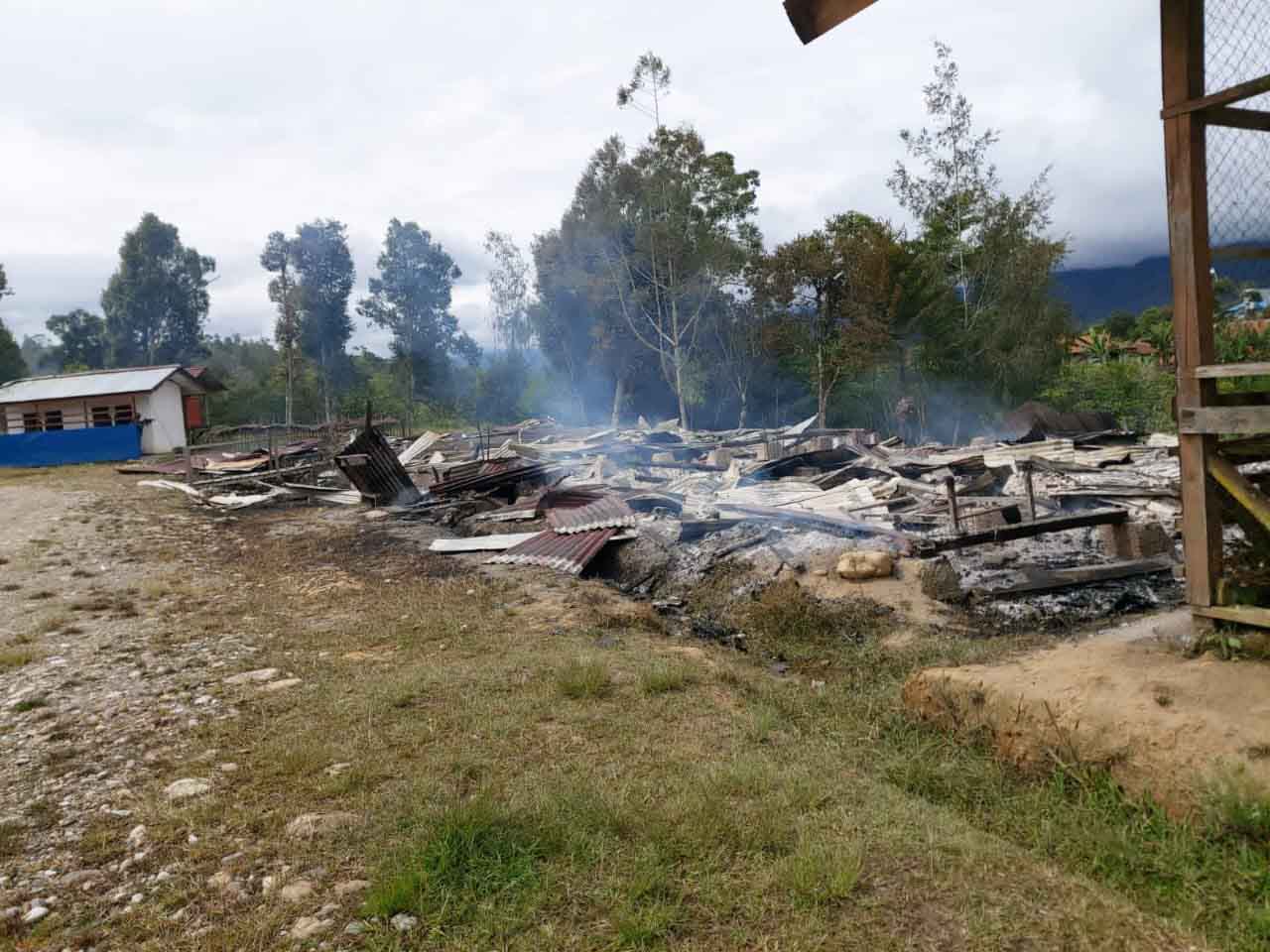 Pembakaran sekolah tersebut dilakukan sekitar pukul 10.30 WIT, akibat dari pembakaran tersebut menyebabkan satu ruang guru dan satu ruang kelas terbakar, namun tidak terdapat kerugian personel dikarenakan pada saat kejadian tidak ada kegiatan proses belajar mengajar. Berselang beberapa waktu kemudian KST melakukan aksi penembakan terhadap pesawat Ikairos PK-HVV yang akan mendarat.