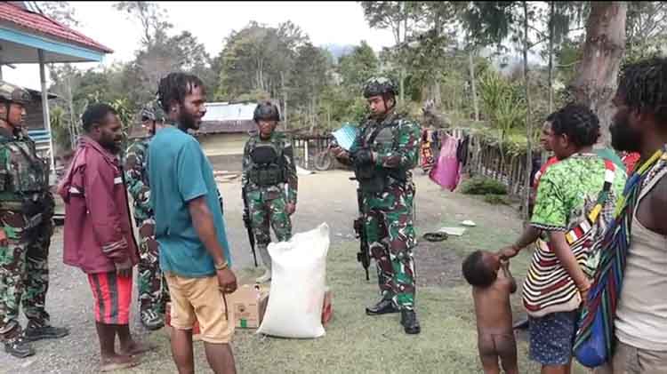 “Satgas Yonif 305/Tengkorak membantu meringankan beban masyarakat pengungsi yang diusir oleh kelompok KST dengan memberikan bantun logistik berupa makanan harian pada masyarakat,” ungkap Kapendam XVII/Cenderawasih.
