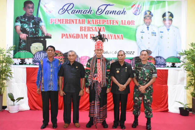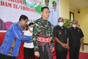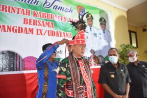 Sementara itu, Bupati Alor Drs. Amon Djobo dalam sambutannya menyampaikan ucapan selamat datang kepada Pangdam IX/Udayana di Bumi Alor, “Tara Miti Tomi Nuku” yang berarti berbeda-beda kedudukan atau status sosial tapi tetap satu hati sebagai manusia, orang Abui, Alor, NTT dan Indonesia.