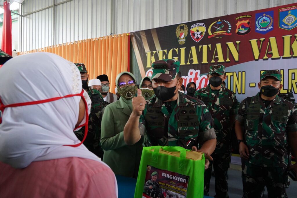 Terkait kegiatan vaksinasi yang dilaksanakan oleh vaksinator dari TNI, Polri dan Dinas Kesehatan NTB sebanyak 1000 dosis, sedangkan bantuan bingkisan dari Kasad kepada masyarakat dan santri Ponpes sebanyak 1000 paket.