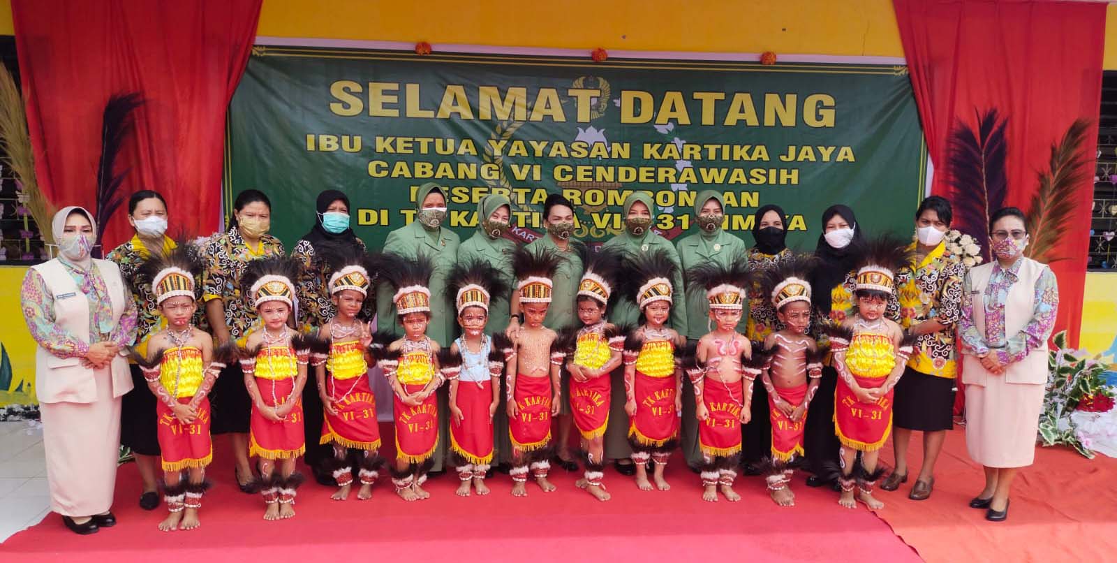“Ny. Erni Teguh Muji Angkasa selaku Ketua Persit Daerah XVII/Cenderawasih menyapa anak-anak TK dan bertemu Kepala Sekolah beserta Staf TK Kartika,” tutup Wakapendam XVII/Cenderawasih.