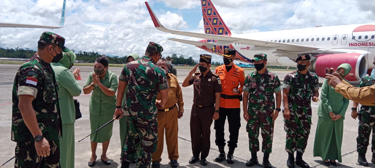 Wakapendam menerangkan bahwa Bapak Pangdam XVII/Cenderawasih beserta rombongan tiba di Terminal UPBU Bandara Mozes Kilangin Timika, Kelurahan Kwamki, Distrik Mimika Baru, Kabupaten Mimika pada hari Senin siang (28/3) disambut oleh Forkopimda Kab Mimika dan pejabat  TNI Polri.