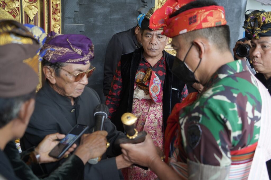 Saat penganugerahan gelar Adat Sasak tersebut, ditandai dengan penyerahan sebilah Keris (senjata tradisional Suku Sasak) dan piagam dari Majelis Adat Sasak oleh Ketua Adat Sasak kepada Pangdam IX/Udayana. (Pendam IX/Udy)