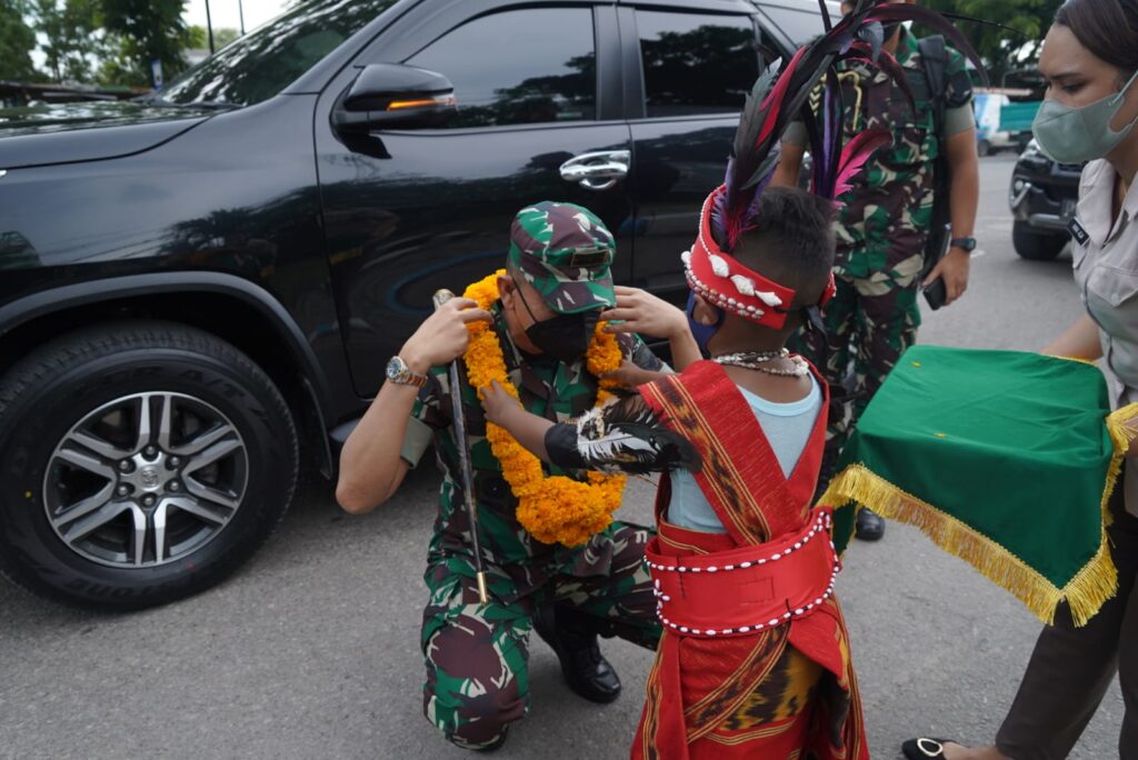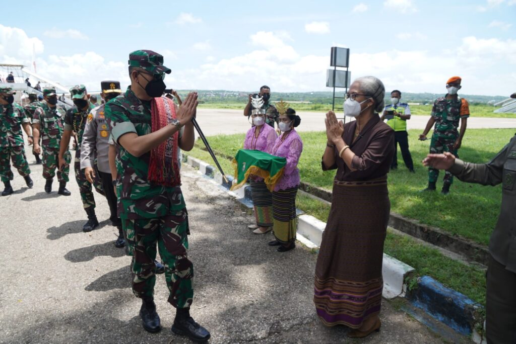 Tiba di Bandara El Tari Kupang, Pangdam bersama rombongan disambut Forkopimda Provinsi NTT dengan pengalungan selendang oleh Kapolda NTT dan tarian adat Rote Ndao, menuju VIP Room Bandara El Tari Kupang. Kegiatan dilanjutkan menuju Kantor Gubernur NTT dalam rangka mengikuti pengarahan Presiden RI melalui Vidcon.