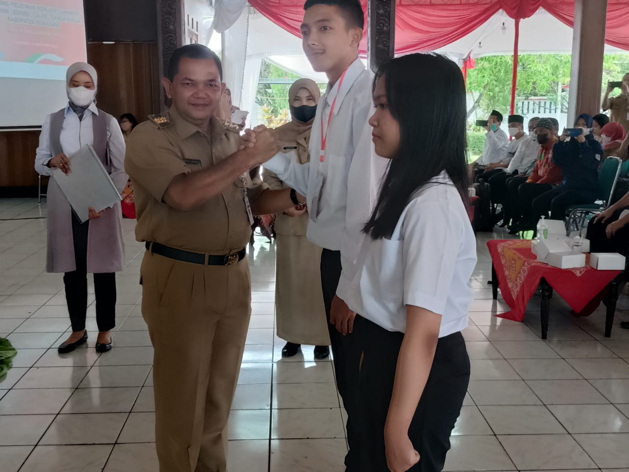 “Pemkab memfasilitasi para calon tenaga kerja untuk masuk ke pasar kerja itu, dengan melatih ketrampilan menjahit secara gratis,” katanya usai membuka secara resmi pelatihan menjahit gratis, bagi calon tenaga kerja, di pendapa rumah dinas bupati setempat, Senin (24/10/2022) pagi.