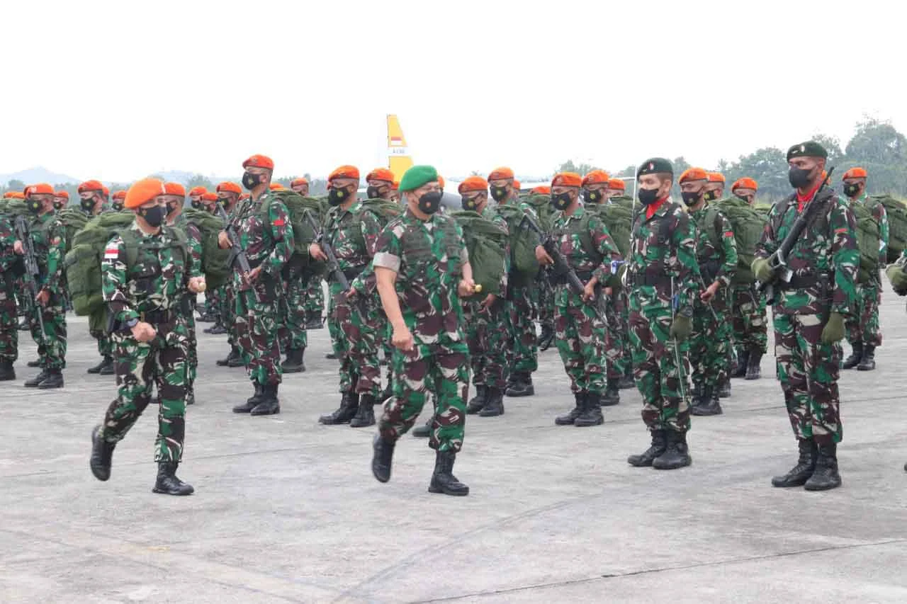 JAYAPURA, “TABLOIDNUSANTARA.COM” – Berkenaan dengan selesainya melaksanakan tugas di wilayah Papua, Satgas Kopasgat dilepas dengan rangkaian upacara pelepasan dipimpin Pangdam XVII/Cenderawasih Mayjen TNI Teguh Muji Angkasa, S.E., M.M bertempat di Baseops Lanud Silas Papare, Sentani, Kab. Jayapura, Selasa (15/2/2022).
