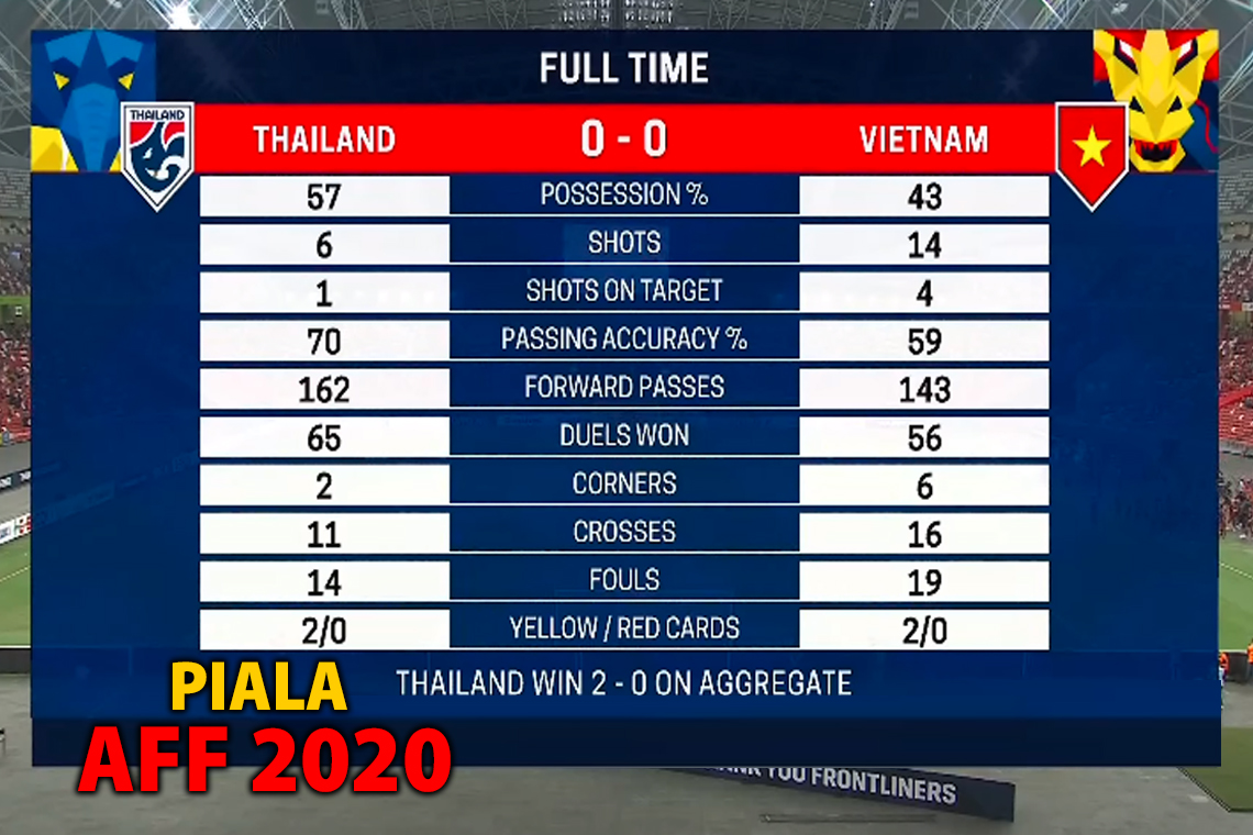 TIMNAS THAILAND LOLOS KE-FINAL PIALA AFF2020, USAI MENAHAN IMBANG 0-0 TIMNAS VIETNAM, THAILAND UNGGUL AGREGAT GOL 2-0 PADA LEG PERTAMA.