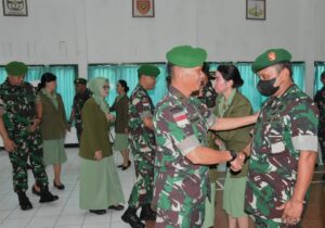 Dalam kesempatan yang sama, Ketua Persit KCK Koorcabrem 161 PD IX/Udayana Ny.Tita Budiman menyerahterimakan jabatan Wakil Ketua Persit KCK Koorcabrem 161 PD IX/Udayana kepada Ny. Simon P. Kamlasi dan disaksikan oleh seluruh pejabat Jajaran Korem 161/WS yang hadir pada kegiatan Sertijab. (Penrem 161/WS)