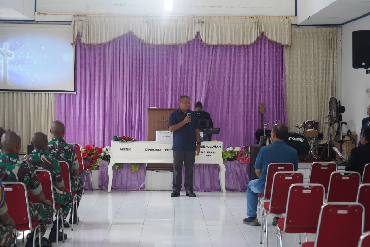 Dalam sambutannya, Pangdam XVII/Cenderawasih Mayjen TNI Muhammad Saleh Mustafa menyampaikan dan mengajak seluruh Jemaat yang hadir untuk senantiasa bersyukur karena telah diberi kesehatan dan selalu dalam berkat Tuhan Yang Maha Kuasa.
