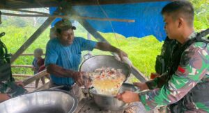 Dabra, “tabloidnusantara.com” – Personel Satgas Yonif Raider 142/KJ, menyambangi rumah Bapak Kostan Barosa, di Kampung Dabra, Distrik Mamberamo Hulu, Kabupaten Mamberamo Raya, Papua Pegunungan Tengah, Senin (14/11/2022).