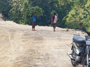 Salah satunya I Ketut Polos yang merupakan warga Dusun Pundukaha Kaja, Desa Bunga Mekar yang terlihat membawa bambu melintasi jalan ini.