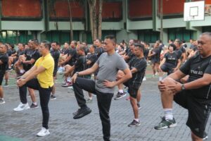 Denpasar – Bangun kebersamaan dan tetap terjaganya kesehatan serta kebugaran tubuh, Prajurit dan PNS Makodam IX/Udayana bersama Bank Negara Indonesia (BNI) melaksanakan olahraga bersama yang bertajuk Loyalty Payroll bertempat di Lapangan Upacara Makodam IX/Udayana, Denpasar, pada Jumat (2/12/2022).