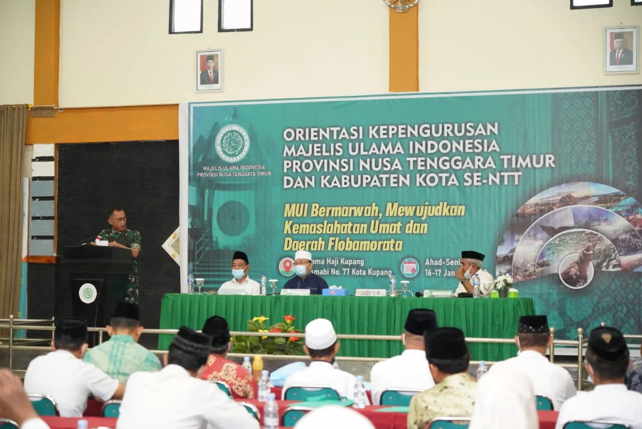 Kupang, “TABLOIDNUSANTARA.COM” – Dalam rangka mewujudkan kemaslahatan umat, Danrem 161/Wira Sakti Brigjen TNI Iman Budiman, S.E., menghadiri kegiatan Orientasi Kepengurusan Majelis Ulama Indonesia (MUI) Provinsi Nusa Tenggara Timur dan Kabupaten/Kota se NTT, yang digelar di Aula Asrama Haji Kupang, Jalan Amabi No.77, Kelurahan Oebufu, Kecamatan Oebobo, Kota Kupang, pada Senin (17/01/2022).