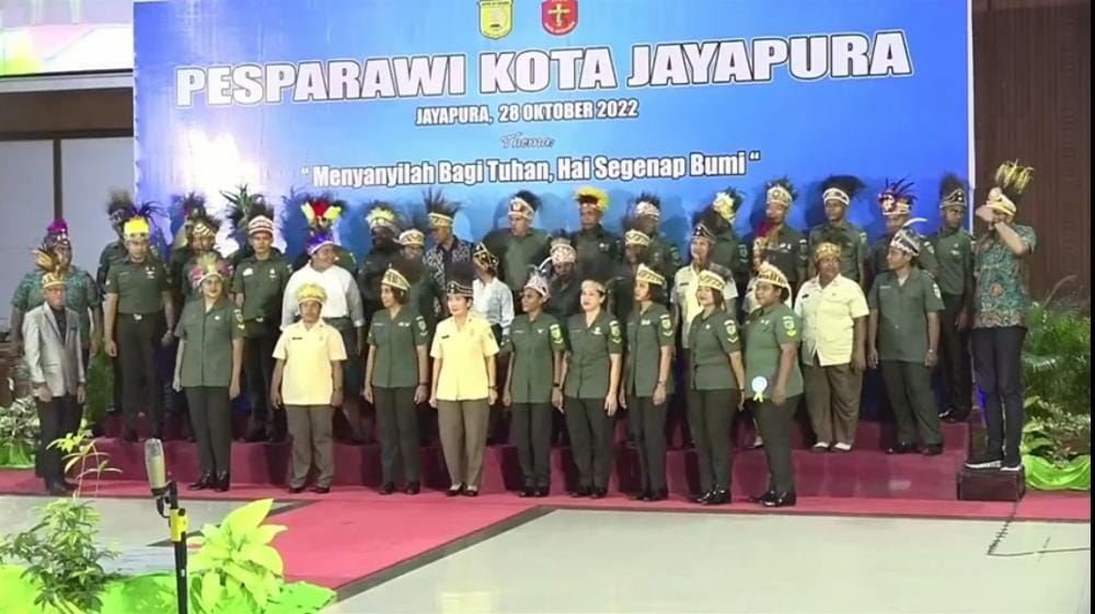 Jayapura, “Tabloidnusantara.com” – Selain turut menyukseskan kegiatan Pesta Paduan Suara Gerejawi (PESPARAWI) Kota Jayapura, Kodam XVII/Cenderawasih turut ambil bagian dalam perlombaan Paduan Suara Dewasa Campuran Antar Jemaat (Gereja) dan Instansi/TNI Polri/BUMN, bertempat di gedung Gereja GKI Calvaria Angkasa Jayapura, Jumat (28/10/2022).