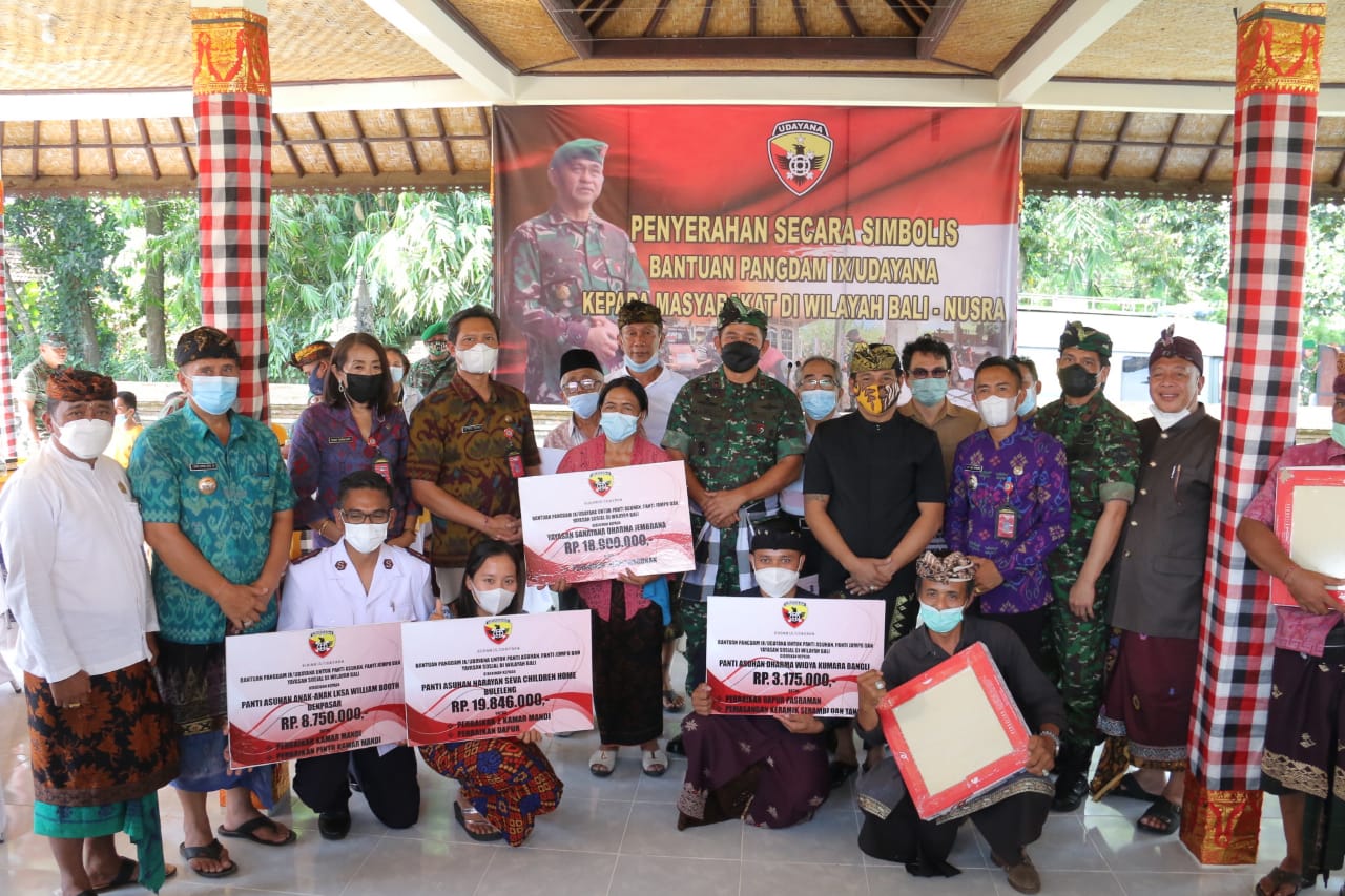 Badung, “TABLOIDNUSANTARA.COM” – Pangdam IX/Udayana Mayjen TNI Maruli Simanjuntak, M.Sc., secara simbolis menyerahkan bantuan berupa dana tunai dan keramik lantai kepada beberapa Yayasan Sosial dan Yatim Piatu serta Panti Asuhan, yang dilaksanakan di Wantilan Pura Desa dan Pura Puseh Desa Adat Ayunan, Kecamatan Ambiansemal, Kabupaten Badung, pada Selasa (25/1/2022).