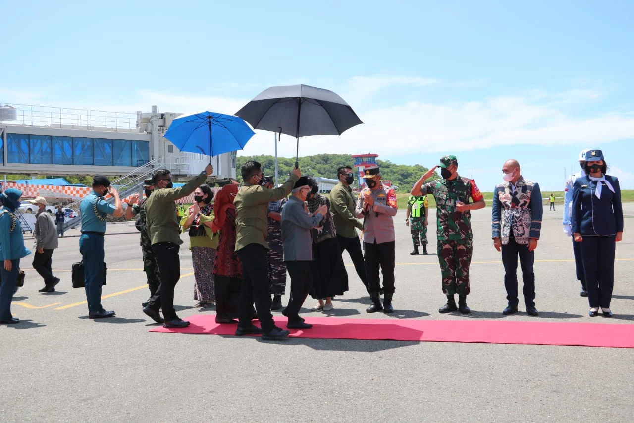 Manggarai Barat, “TABLOIDNUSANTARA” – Setelah melaksanakan Kunjungan Kerja selama dua hari di Labuan Bajo, Wapres RI Prof. Dr. (H.C) KH. Ma’ruf Amin dan Ibu Hj. Wury Estu Ma’aruf Amin beserta rombongan bertolak menuju Jakarta melalui Bandara Komodo Labuan Bajo, Kabupaten Manggarai Barat, pada Selasa (15/03/2022).