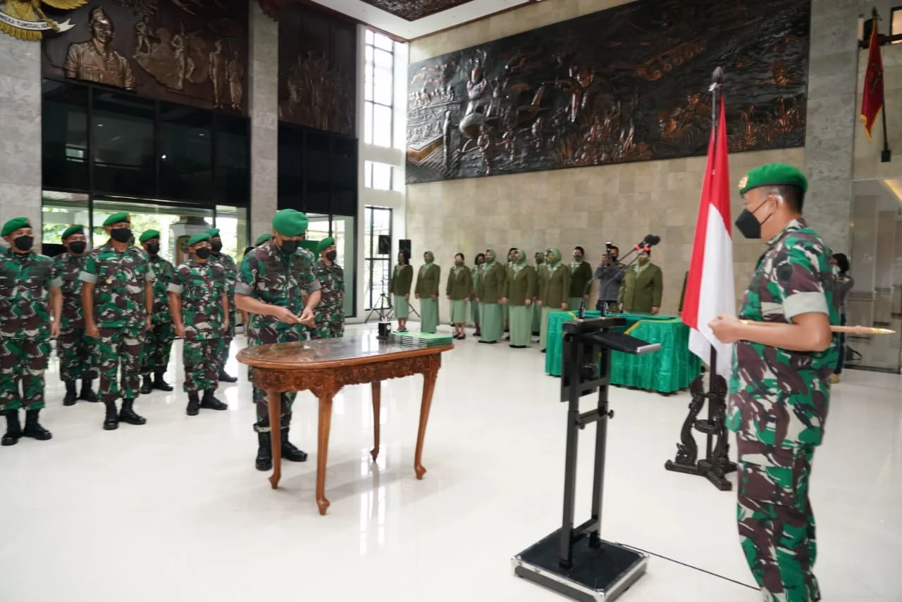Denpasar, “TABLOIDNUSANTARA” – Pangdam IX/Udayana Mayjen TNI Sonny Aprianto, S.E., M.M., memimpin langsung acara Serah Terima Jabatan (Sertijab) dan Tradisi Laporan Korps 6 Pejabat Kodam IX/Udayana bertempat di Hall Makodam IX/Udayana, Denpasar, pada Rabu (23/2/2022).