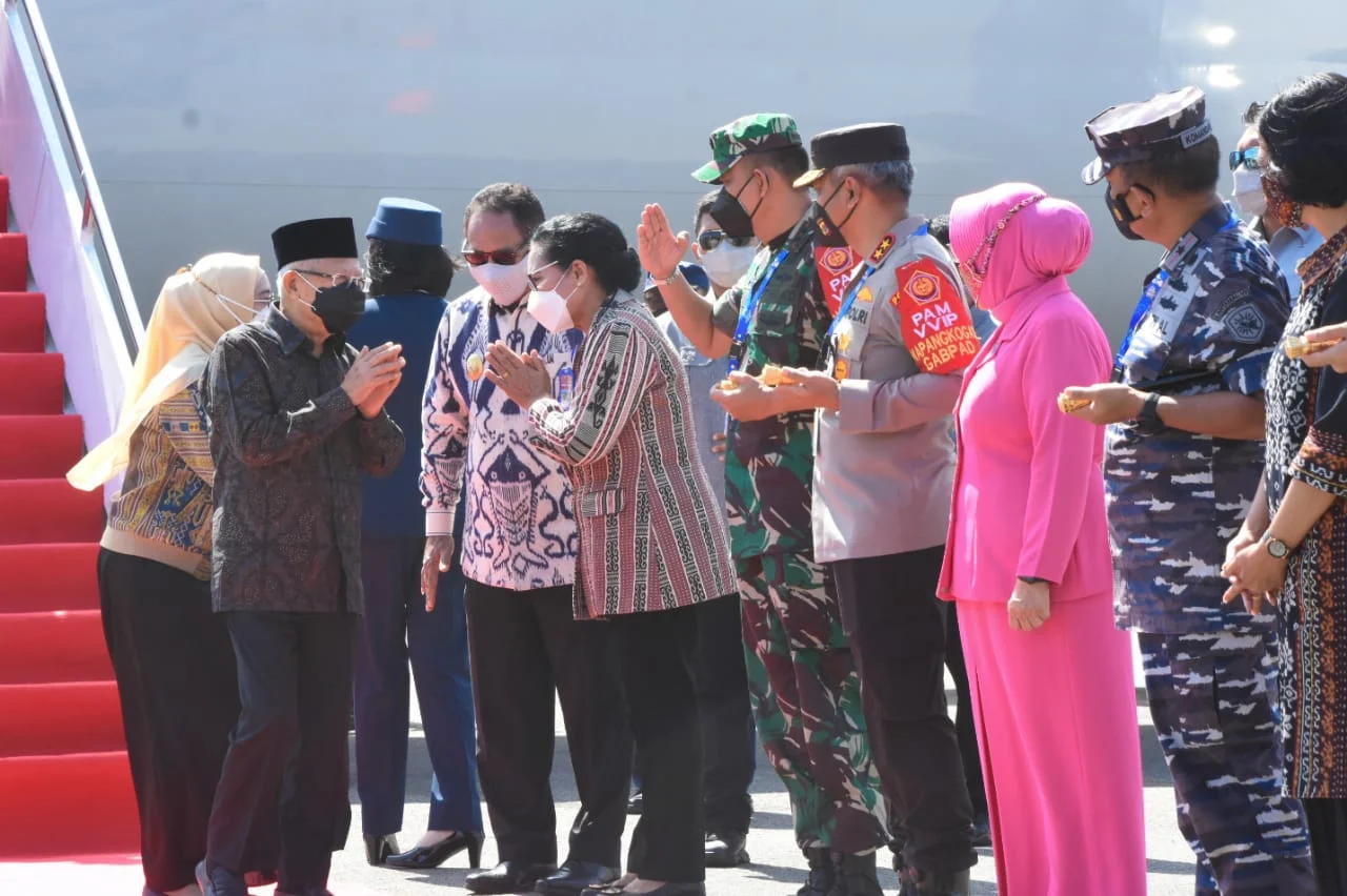 Setibanya di Bandara Komodo Labuan Bajo, Wapres RI beserta rombongan disambut oleh Forkopimda NTT selanjutnya menuju ruang transit VIP Bandara Komodo Labuan Bajo kemudian rombongan menuju Hotel Meruorah Komodo Labuan Bajo untuk melanjutkan kegiatan berikutnya yang sudah dijadwalkan.