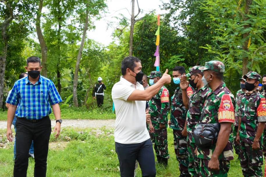 Didampingi oleh Danrem 161/WS, Aslog Kasdam IX/Udy, Aster Kasdam IX/Udy, Kasrem 161/WS, serta para Kasi Kasrem 161/WS dan Dandim 1604/Kupang, Pangdam melaksanakan peninjauan dan pengecekan lokasi Pompa Hidram di Desa Oeltua.
