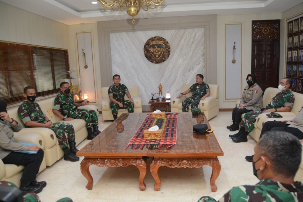 Denpasar, “TABLOIDNUSANTARA.COM” – Pangdam IX/Udayana Mayjen TNI Maruli Simanjuntak, M.Sc., menerima audiensi dari Tim Diklat Integrasi Dikmaba TNI AD dan Diktukba Polri TA. 2021 yang dipimpin oleh Kadispsiad Brigjen TNI I Made Riawan, S.Psi., pada Kamis (16/12) bertempat di Ruang Tamu Pangdam IX/Udayana, Denpasar.