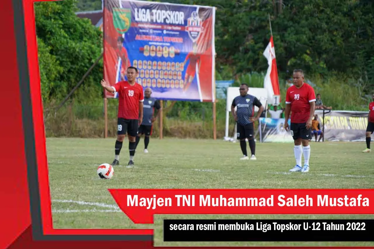 Jayapura, “tabloidnusantara.com” – Pangdam XVII/Cenderawasih Mayjen TNI Muhammad Saleh Mustafa, secara resmi membuka Liga Topskor U-12 Tahun 2022, bertempat di Lapangan Sepak Bola Kampung Nafri, Distrik Abepura, Jayapura, Sabtu (05/11/2022).