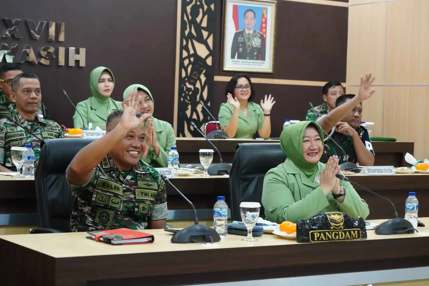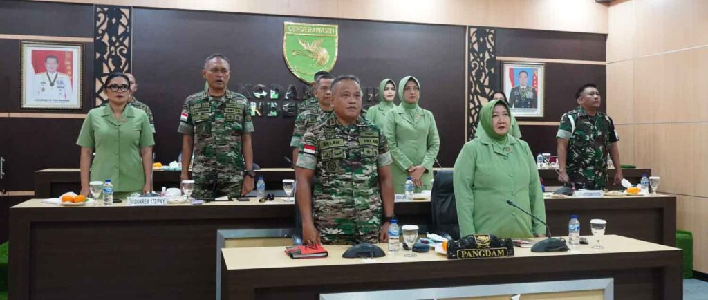 JAYAPURA, “tabloidnusantara.com” – Pangdam XVII/Cenderawasih Mayjen TNI Muhammad Saleh Mustafa didampingi Ketua Persit Kartika Chandra Kirana (KCK) Daerah XVII/Cenderawasih mengikuti kegiatan Apel Dansat TNI AD TA 2023 yang dipimpin langsung oleh Kepala Staf Angkatan Darat (Kasad) Jenderal TNI Dr. Dudung Abdurachman, S.E., M.M beserta Ibu Ketua Umum di Akademi Militer secara Video Conference (Vicon) di Makodam XVII/Cenderawasih, Kamis (09/03/2023).
