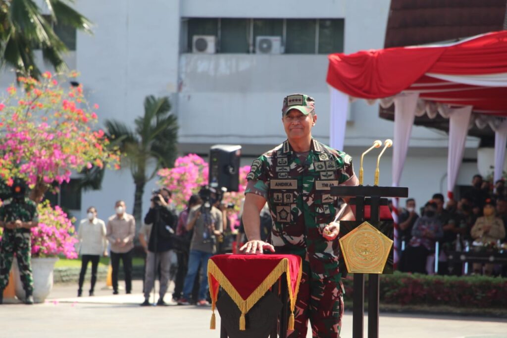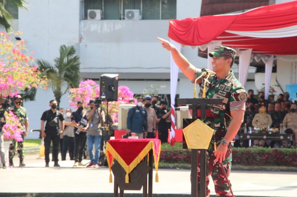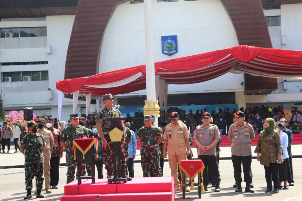Mataram, “TABLOIDNUSANTARA” – Panglima TNI Jenderal TNI Andika Perkasa, S.E., M.A., M.Sc., M.Phil, Ph.D., memimpin langsung Upacara Pembukaan kegiatan Latihan Integritas Taruna Wreda Nusantara (Latsitardanus) ke XLII tahun 2022 di Lapangan Upacara Kantor Gubernur Nusa Tenggara Barat (NTB), pada Sabtu (14/05/2022).