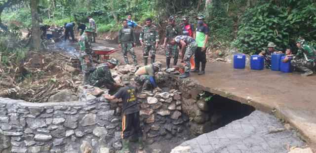 Dipimpin Dansatgas TMMD Letkol Inf Ferry Adianto, S.I.P dan Danki Satgas Kapten Czi I Nyoman Wirahadi bersama sekitar 110 orang personel gabungan tampak bergotongroyong bersama warga masyarakat stempat.