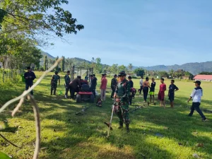 Klungkung, “TABLOIDNUSANTARA” – Untuk memberikan rasa aman kepada masyarakat yang merayakan Hari Raya Kuningan, anggota Koramil 1610-02/Nusa Penida Kopda Koeswara bersama pecalang melaksanakan pengamanan dan monitoring kegiatan persembahyangan di pura Dalem Bias Mutih, desa Ped, Nusa Penida, pada Sabtu (18/06/2022).